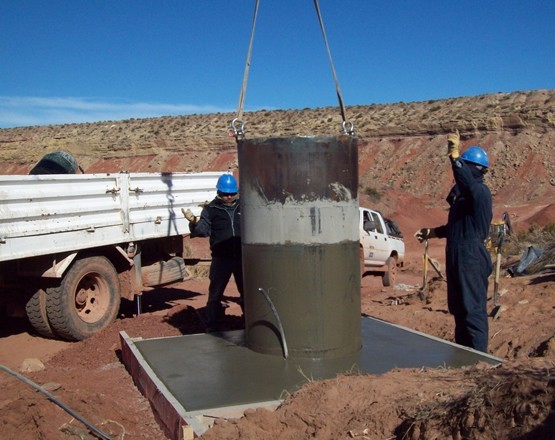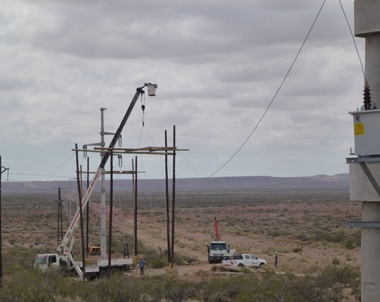 Construcción línea área de 132 KV para la vinculación de la EETT PLAZA HUINCUL con la cabecera de bombeo del ACUEDUCTO ENTRE EL LAGO LOS BARREALES y la localidad de CUTRAL CO. Línea en hormigo de 30 km de longitud conductor de ALAC de 150/25 mm2 e hilo de guardia en conductor de acero galvanizado de 5 mm20